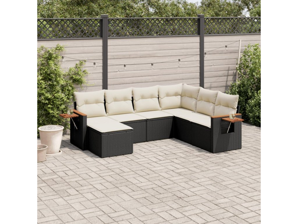 7dílná zahradní sedací souprava s poduškami černá polyratan 3227043