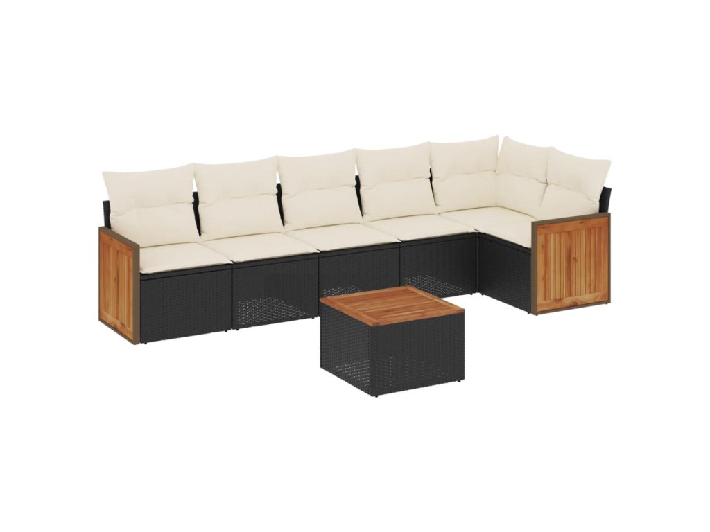 7dílná zahradní sedací souprava s poduškami černá polyratan 3227673