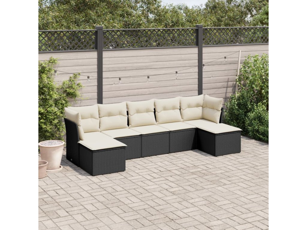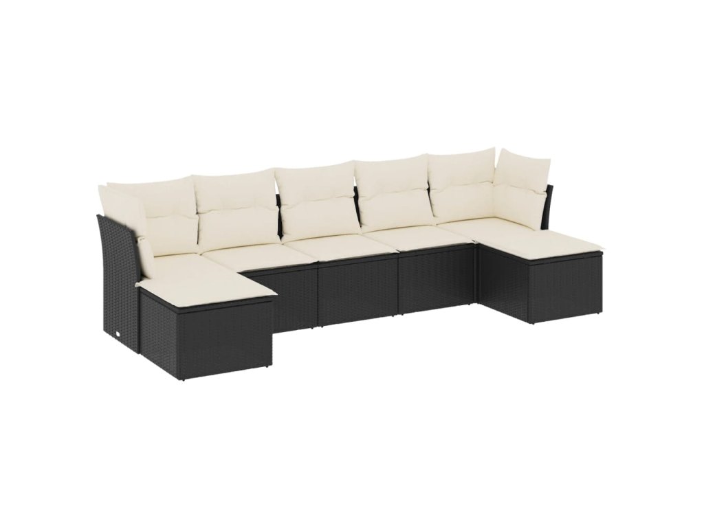 7dílná zahradní sedací souprava s poduškami černá polyratan 3249865