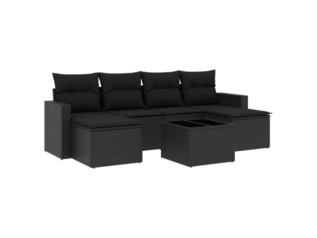 7dílná zahradní sedací souprava s poduškami černá polyratan 3251662