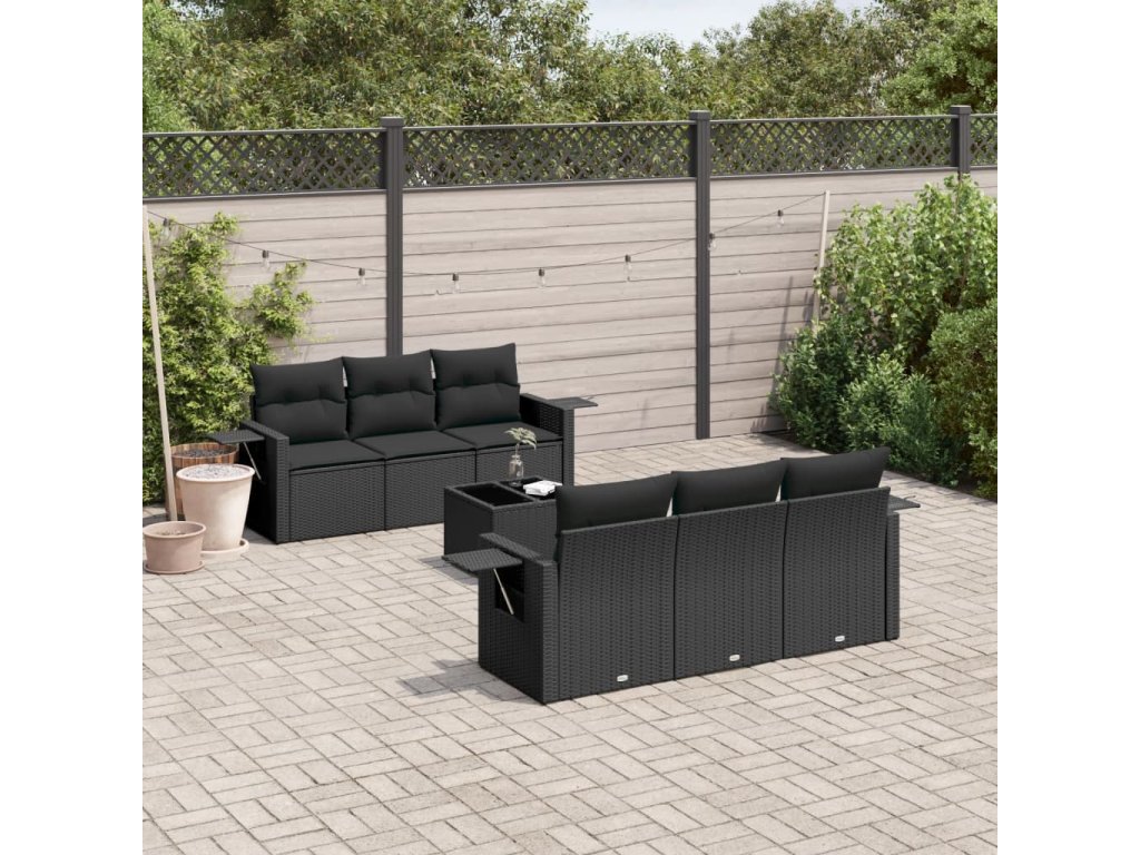7dílná zahradní sedací souprava s poduškami černá polyratan 3252242