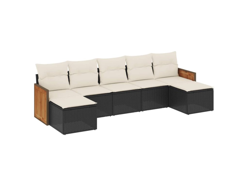 7dílná zahradní sedací souprava s poduškami černá polyratan 3260313