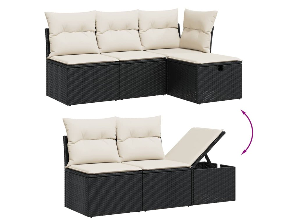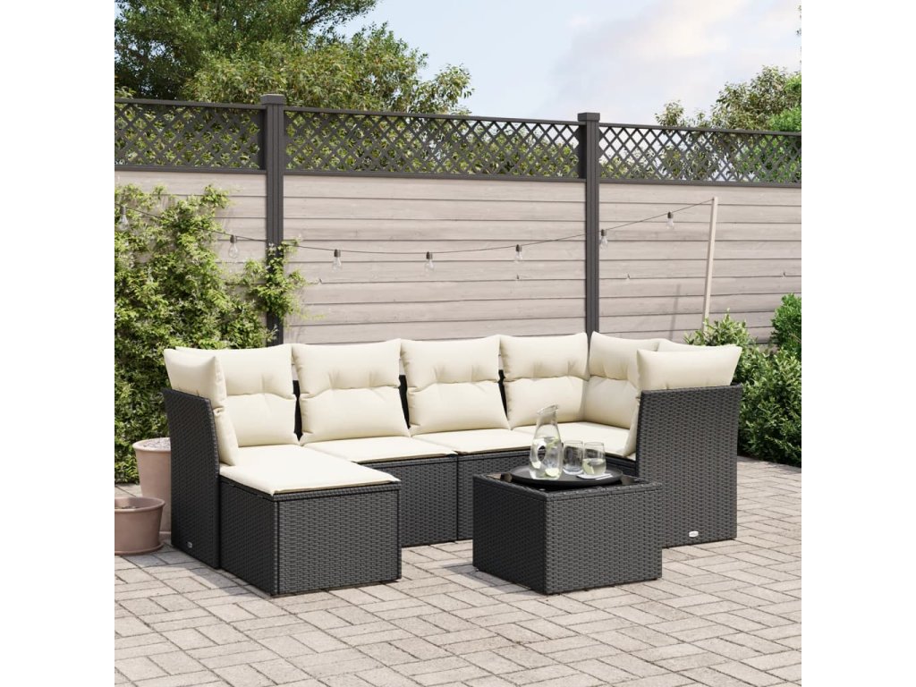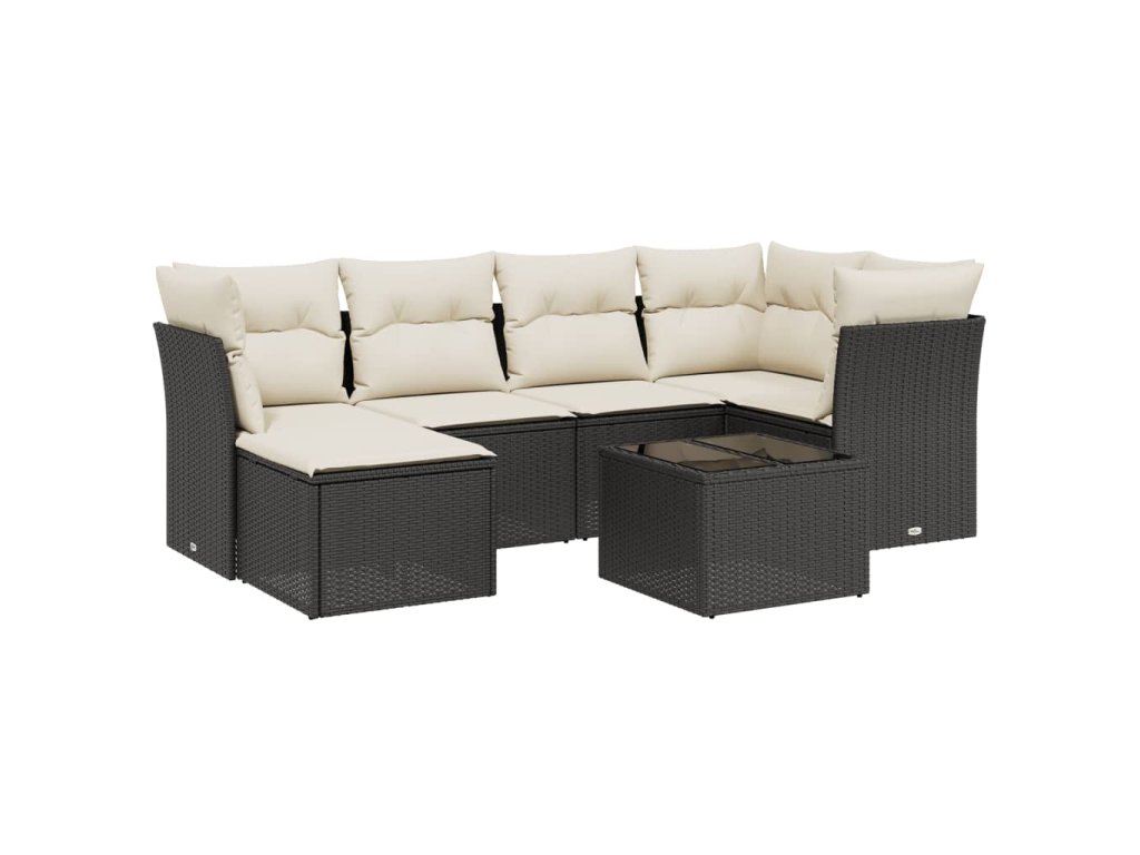 7dílná zahradní sedací souprava s poduškami černá polyratan 3263182