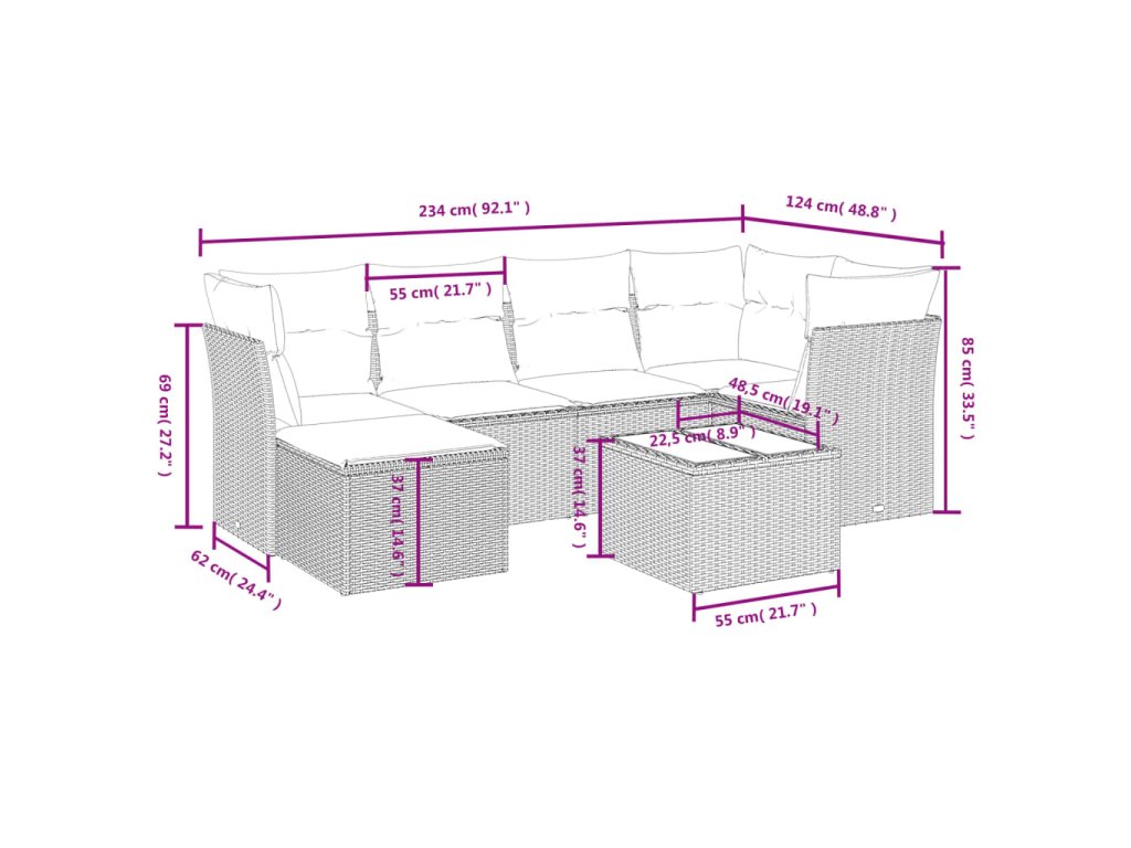 Tato zahradní sedací souprava je dokonalým doplňkem vaší zahrady, terasy nebo dvorku a poskytne vám pohodlné a příjemné místo, kde si můžete povídat s rodinou a přáteli nebo jen tak odpočívat a užívat si pobyt venku.