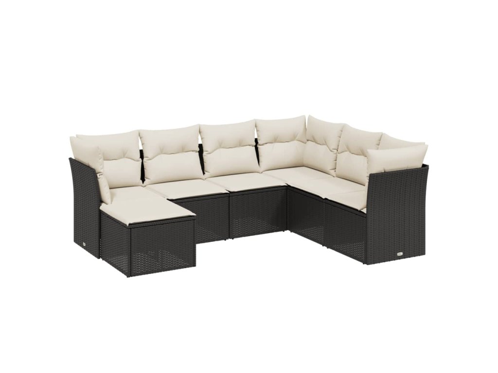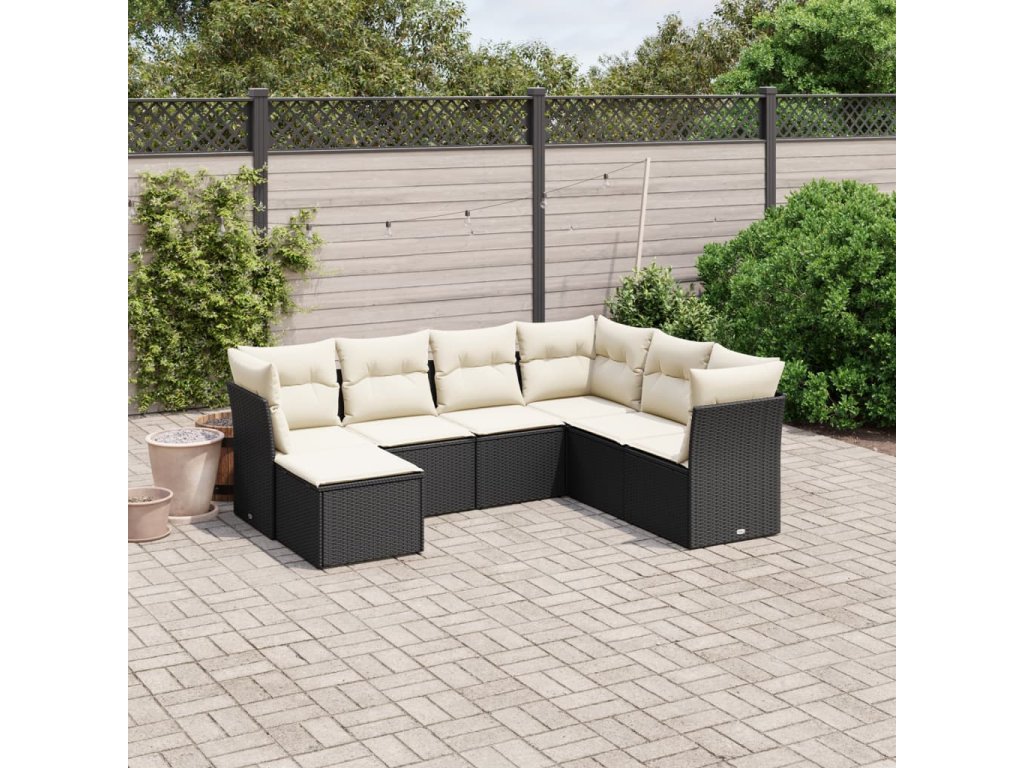 7dílná zahradní sedací souprava s poduškami černá polyratan 3263212