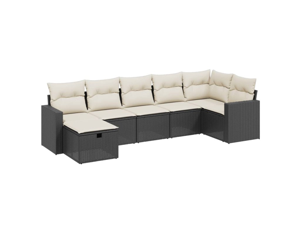 7dílná zahradní sedací souprava s poduškami černá polyratan 3263502