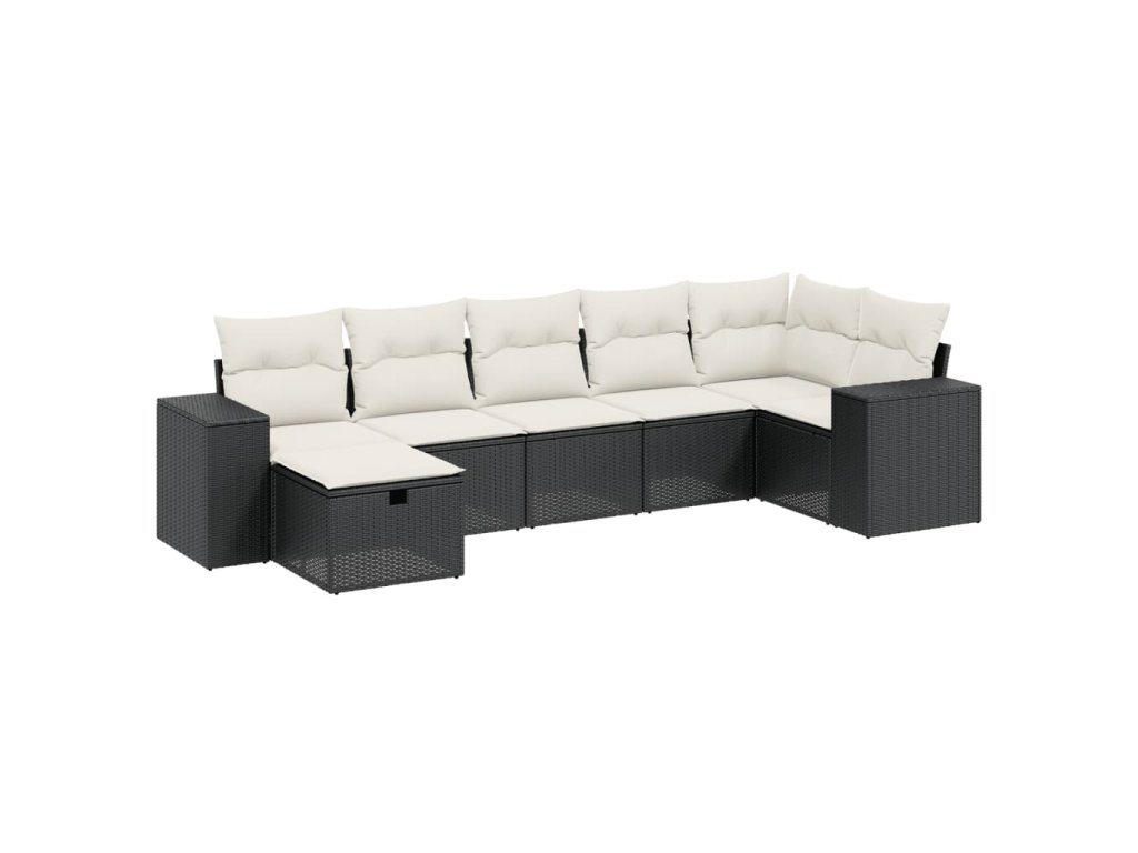 7dílná zahradní sedací souprava s poduškami černá polyratan 3264432