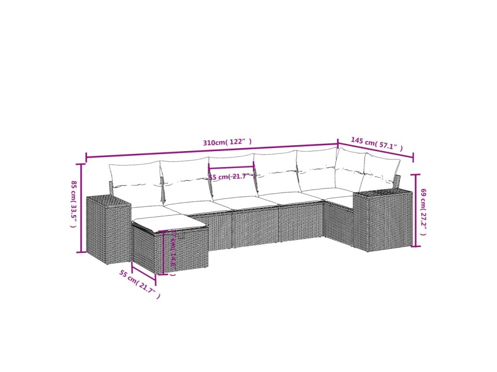 Tato zahradní sedací souprava je dokonalým doplňkem vaší zahrady, terasy nebo dvorku a poskytne vám pohodlné a příjemné místo, kde si můžete povídat s rodinou a přáteli nebo jen tak odpočívat a užívat si pobyt venku.