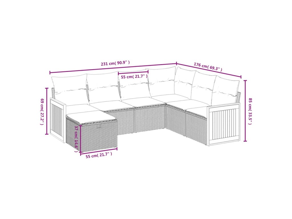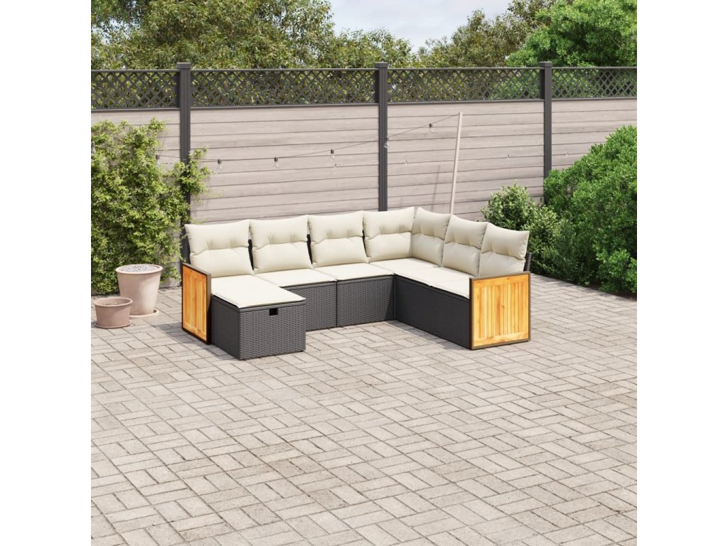 7dílná zahradní sedací souprava s poduškami černá polyratan 3265760