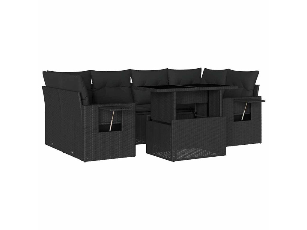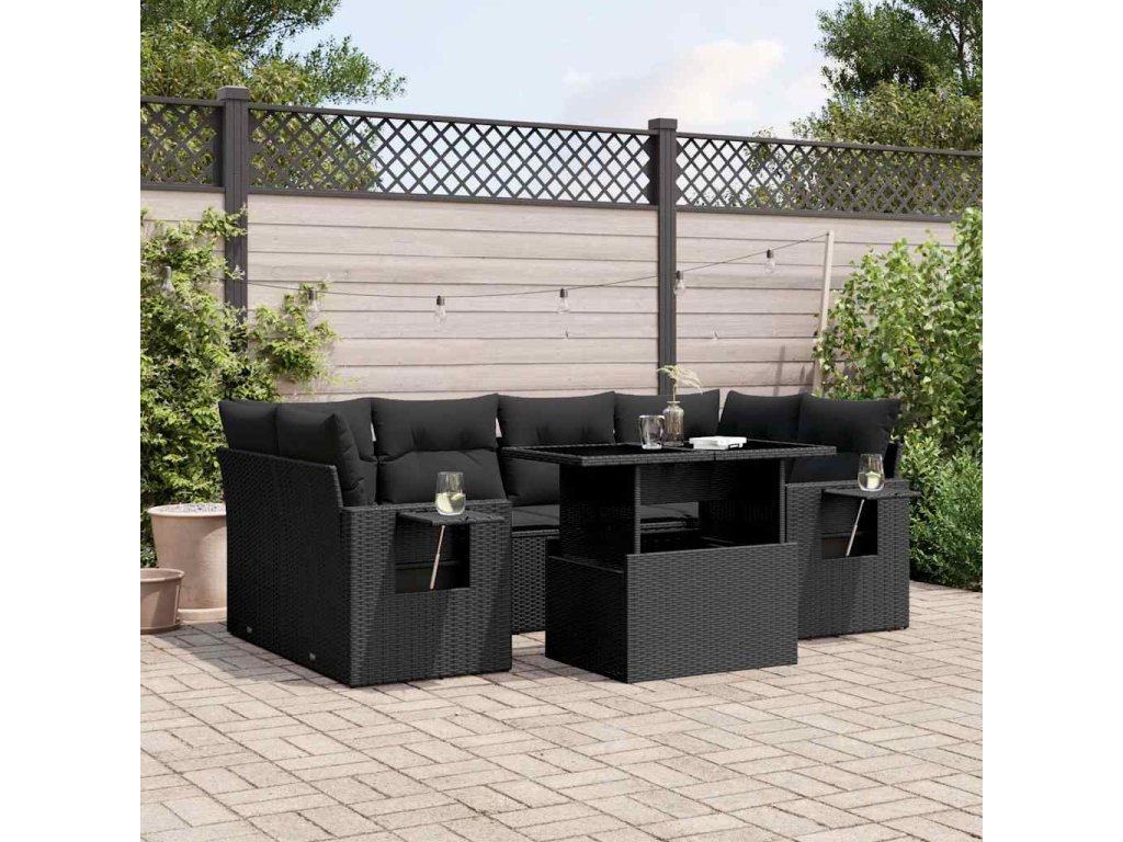 7dílná zahradní sedací souprava s poduškami černá polyratan 3267755