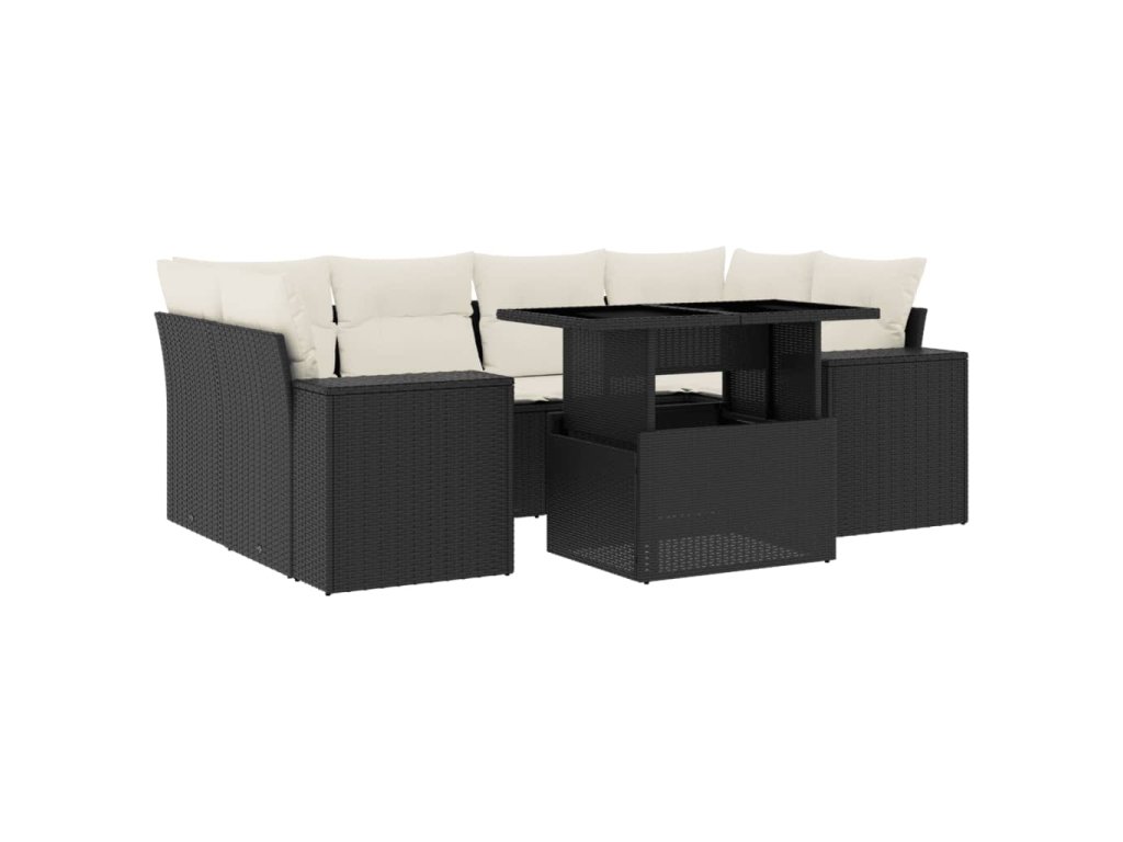 7dílná zahradní sedací souprava s poduškami černá polyratan 3269016