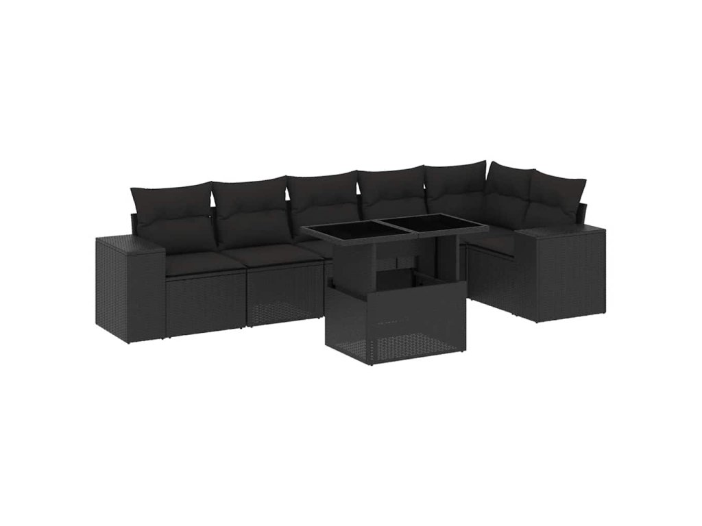7dílná zahradní sedací souprava s poduškami černá polyratan 3269175