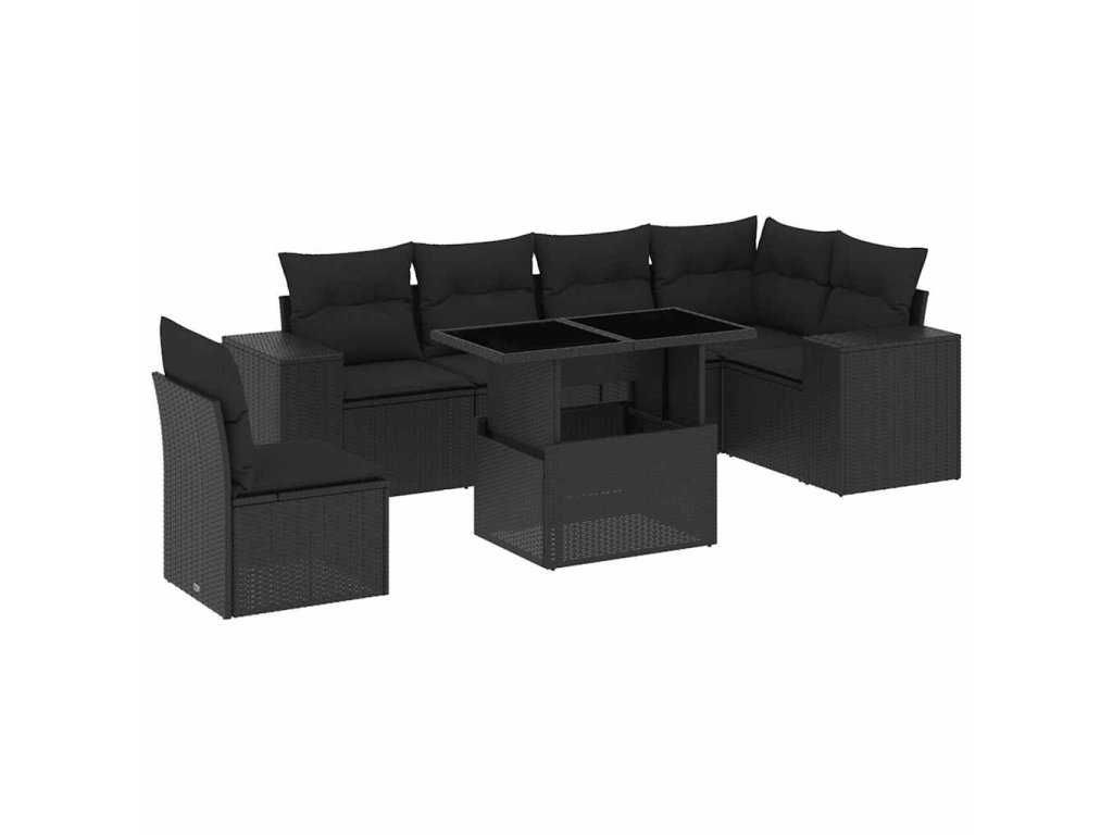 7dílná zahradní sedací souprava s poduškami černá polyratan 3269195