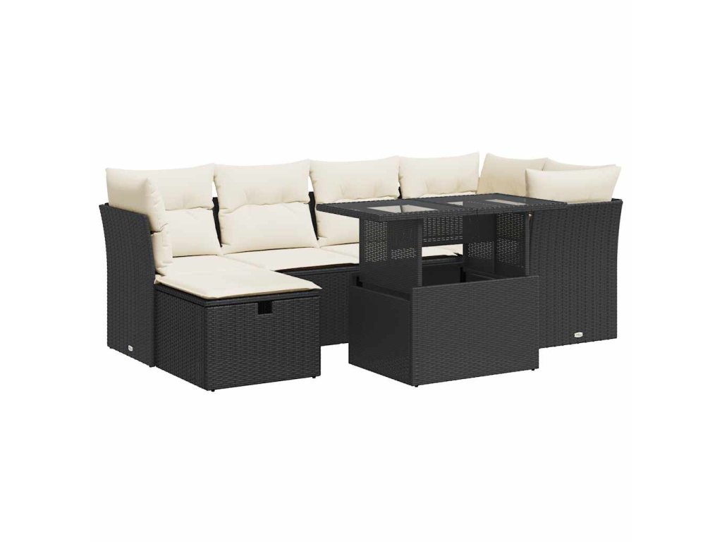 7dílná zahradní sedací souprava s poduškami černá polyratan 3327776