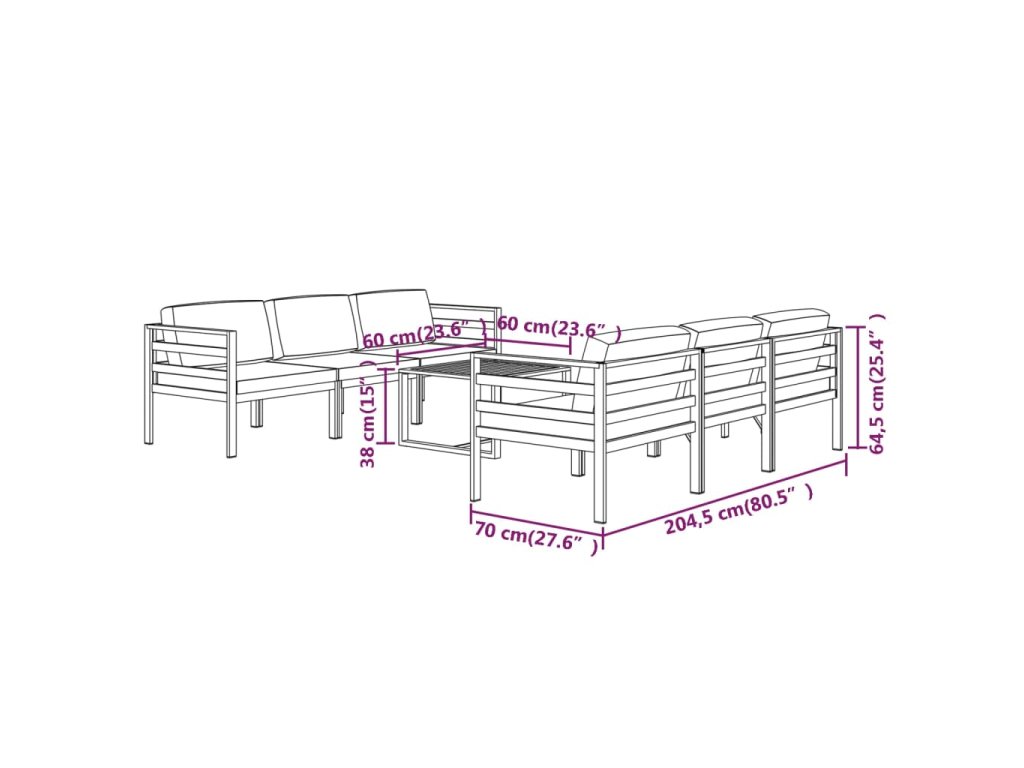 7dílná zahradní sedací souprava s poduškami hliník antracitová 3107805