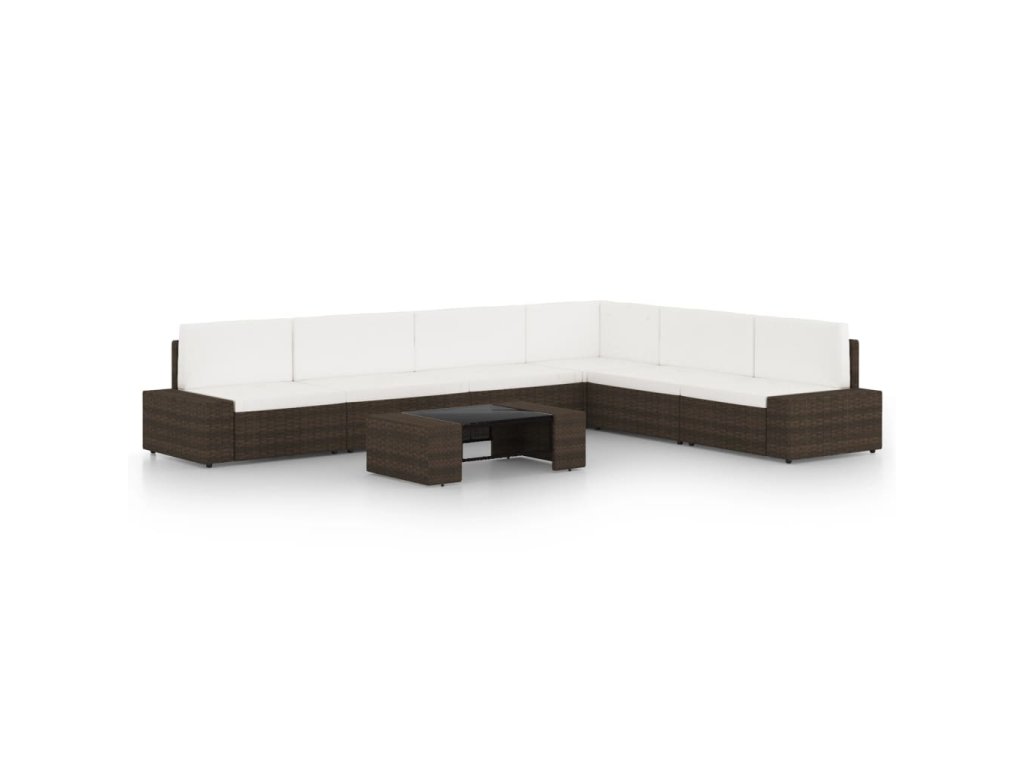 7dílná zahradní sedací souprava s poduškami hnědá polyratan 3067159