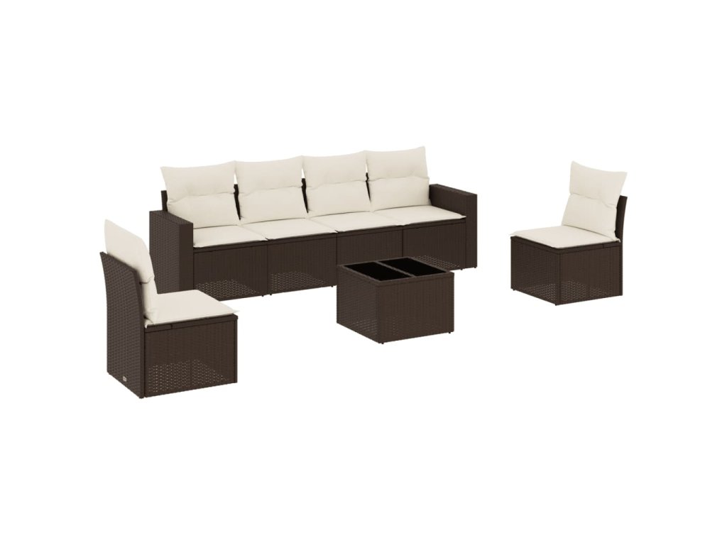 7dílná zahradní sedací souprava s poduškami hnědá polyratan 3218813