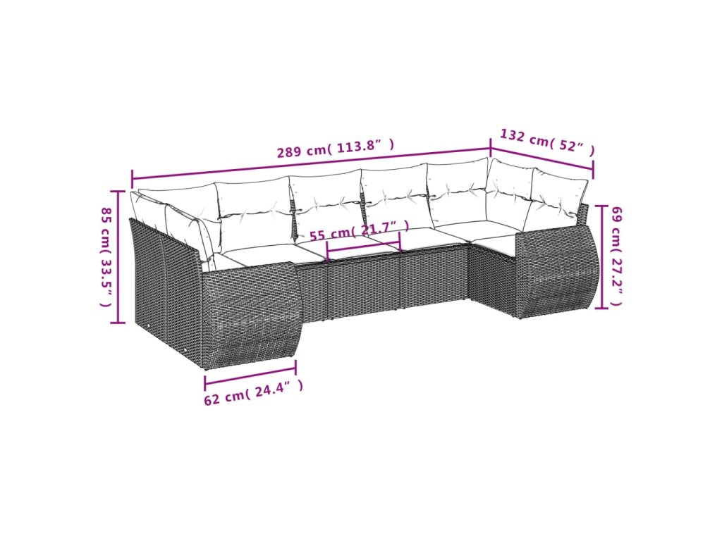 7dílná zahradní sedací souprava s poduškami hnědá polyratan 3221792