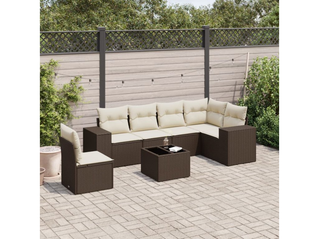 7dílná zahradní sedací souprava s poduškami hnědá polyratan 3222642