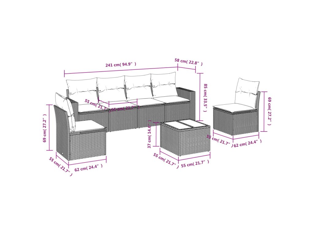 7dílná zahradní sedací souprava s poduškami hnědá polyratan 3251160