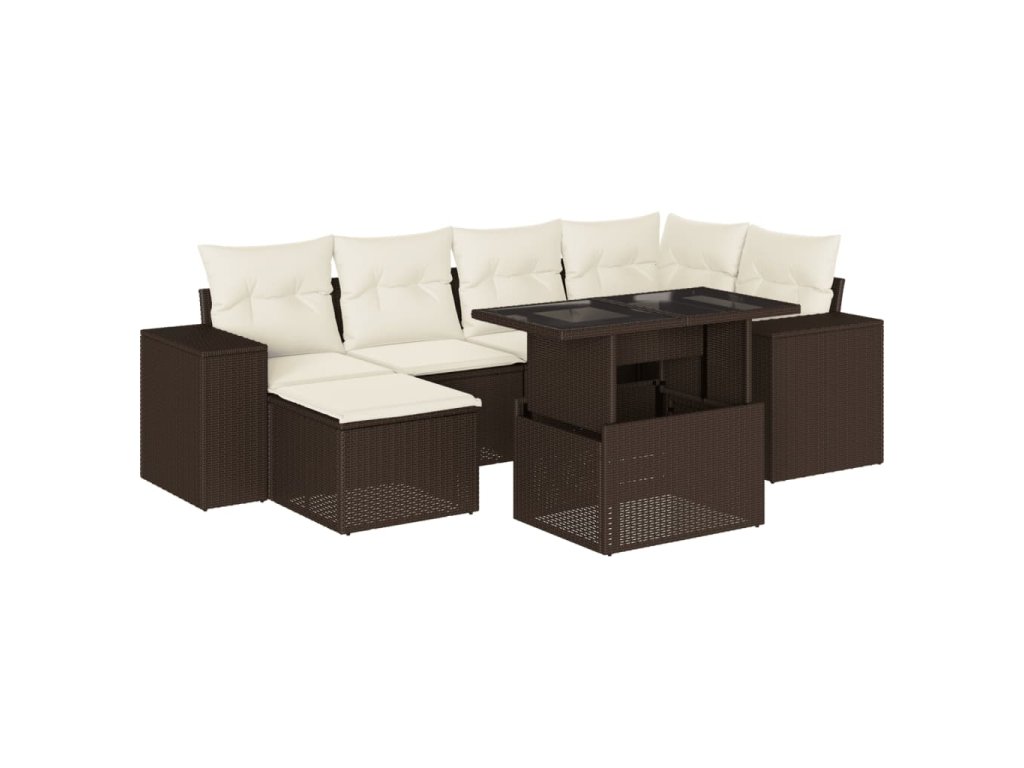 7dílná zahradní sedací souprava s poduškami hnědá polyratan 3269313
