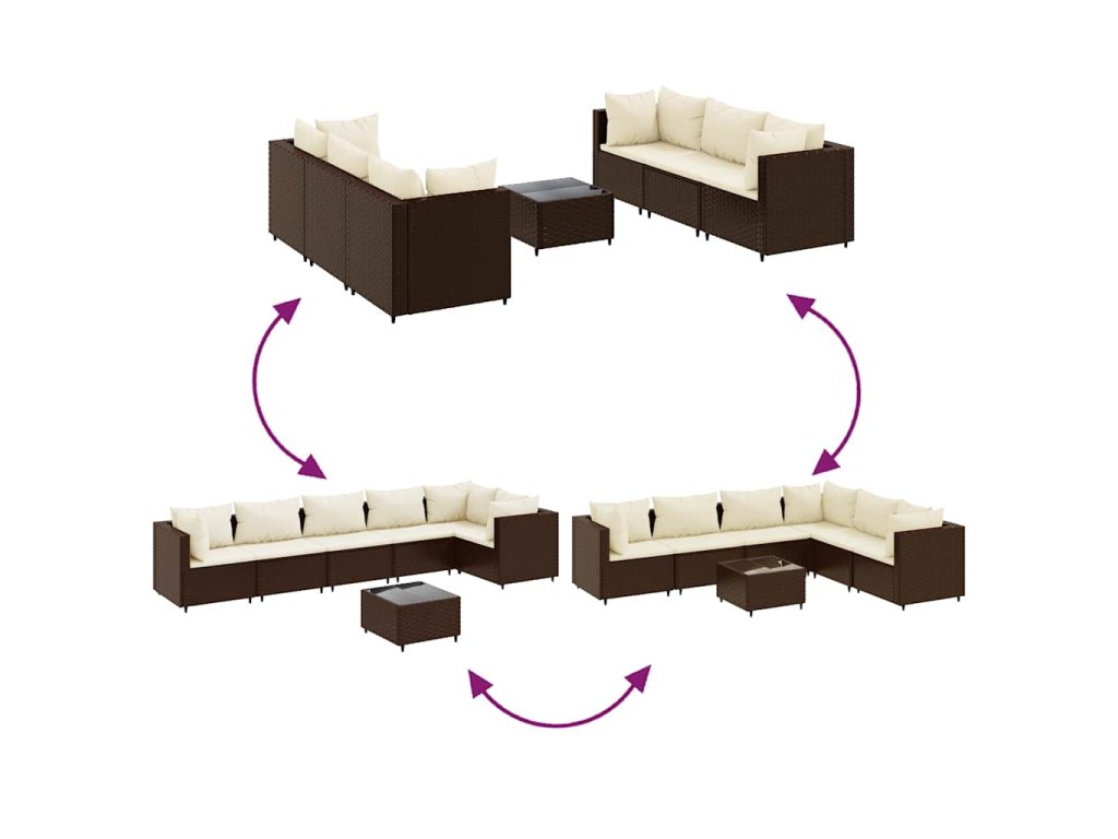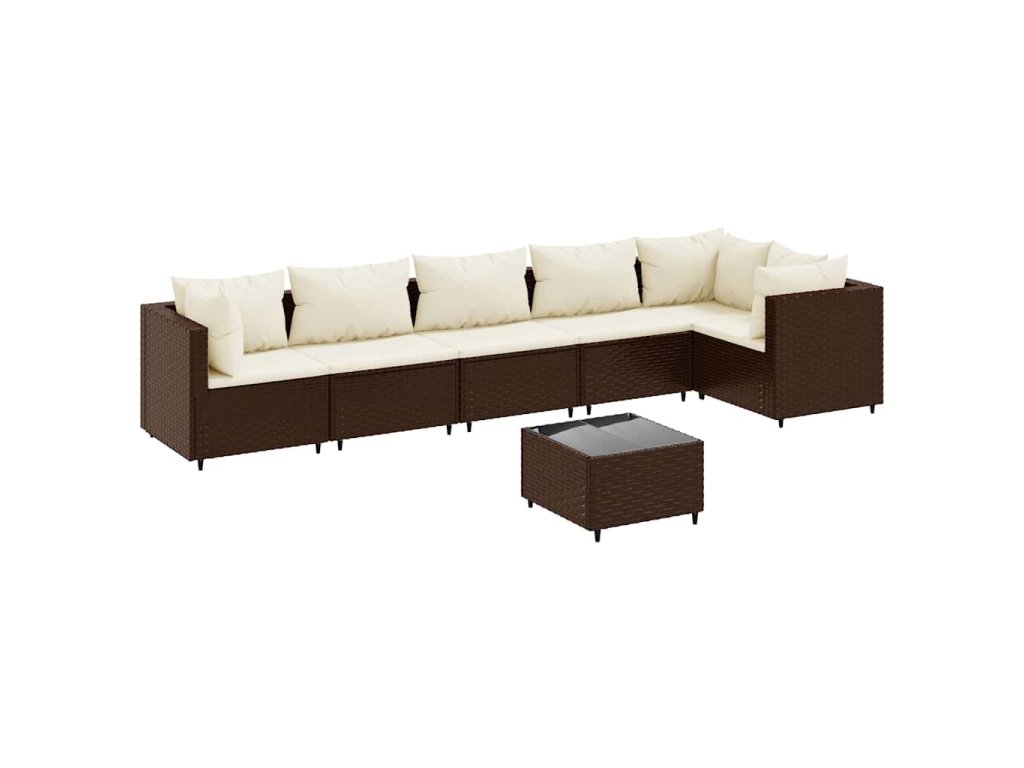 7dílná zahradní sedací souprava s poduškami hnědá polyratan 3308113