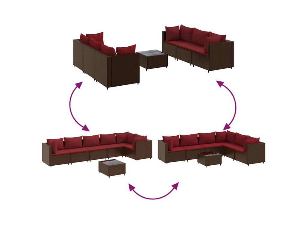 7dílná zahradní sedací souprava s poduškami hnědá polyratan 3308117