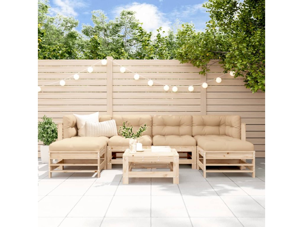 7dílná zahradní sedací souprava s poduškami masivní dřevo 3185948