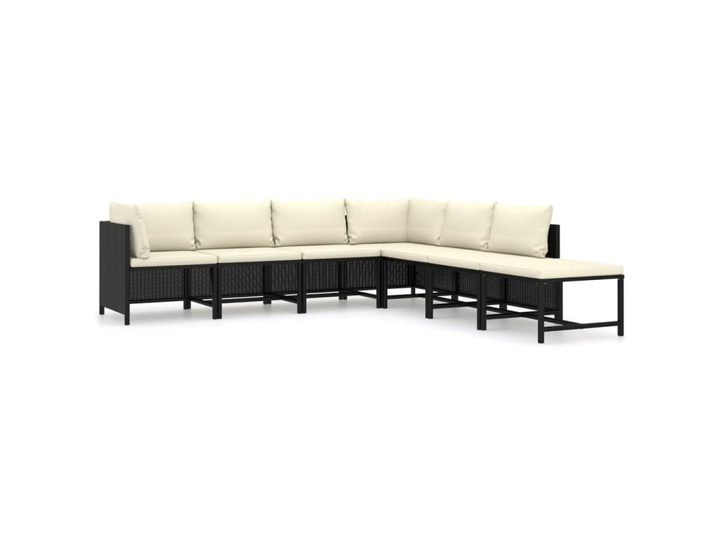 7dílná zahradní sedací souprava s poduškami polyratan černá 3059791