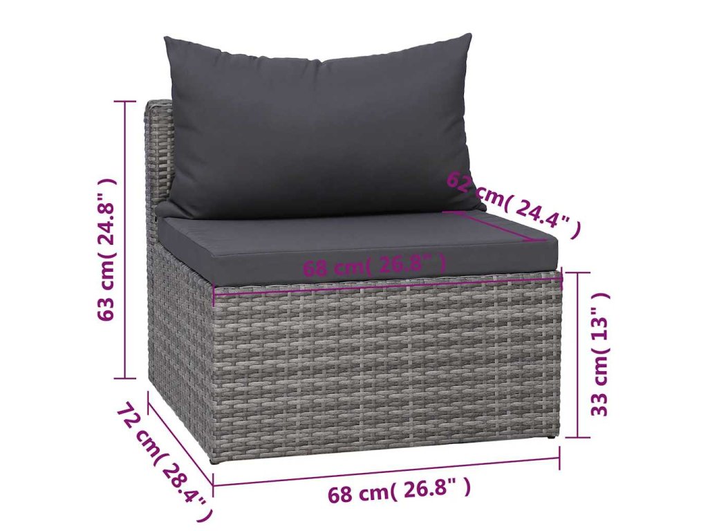 7dílná zahradní sedací souprava s poduškami polyratan šedá 3059493