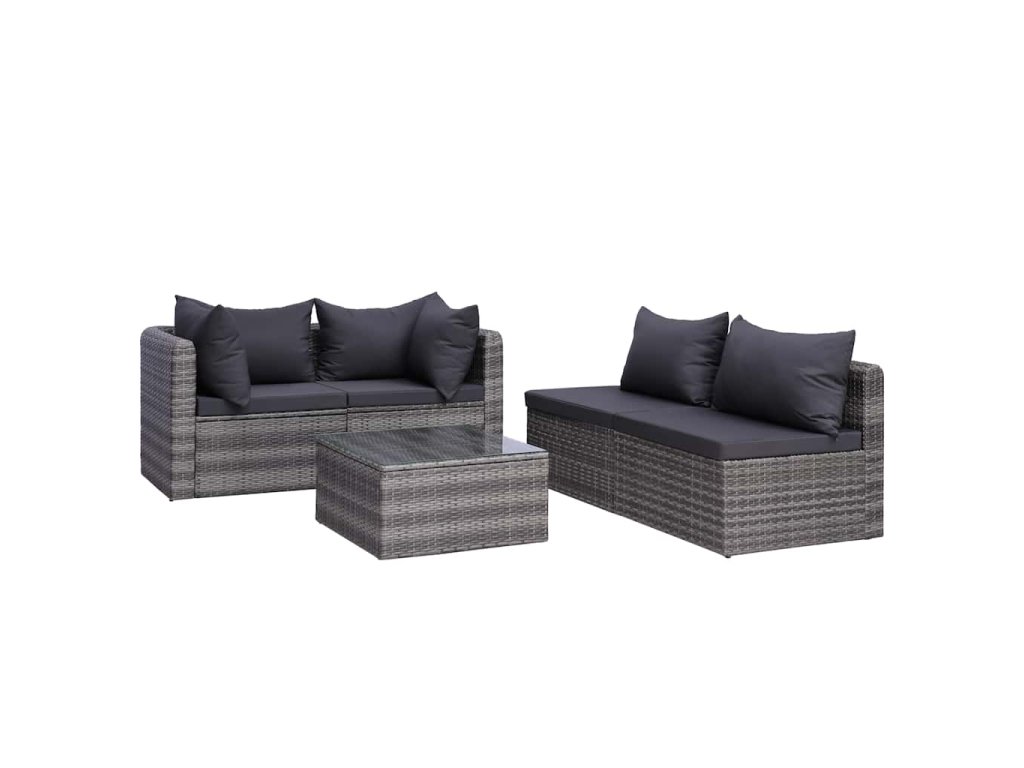 Zahradní sedací souprava je vyrobená z voděodolného polyratanu, který se snadno udržuje čistý. Je pevná a odolná a vhodná pro každodenní venkovní použití. Sada obsahuje mimořádně pohodlné, silně polstrované podušky na sedáky a polštáře za záda, jež vám umožní užívat si stejného pohodlí jako ve vašem obývacím pokoji. Polyesterové potahy jsou nenáročné na údržbu a dají se jednoduše sejmout a vyprat. Polyratanová souprava je velmi flexibilní, můžete ji tedy snadno přestavět tak, aby krásně zapadla do každého prostředí.