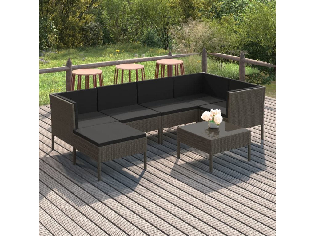 7dílná zahradní sedací souprava s poduškami polyratan šedá 3094410