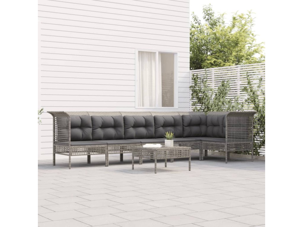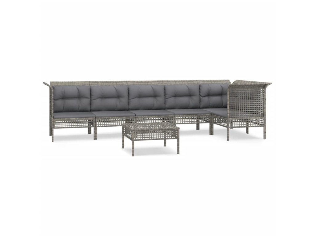 7dílná zahradní sedací souprava s poduškami šedá polyratan 3187510
