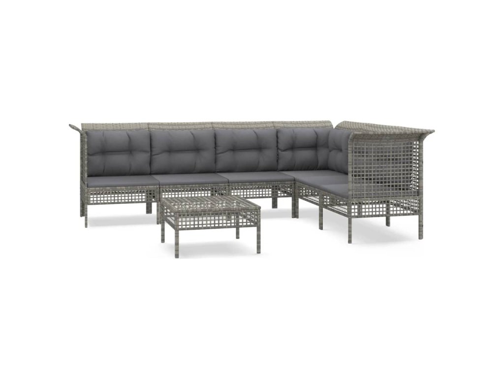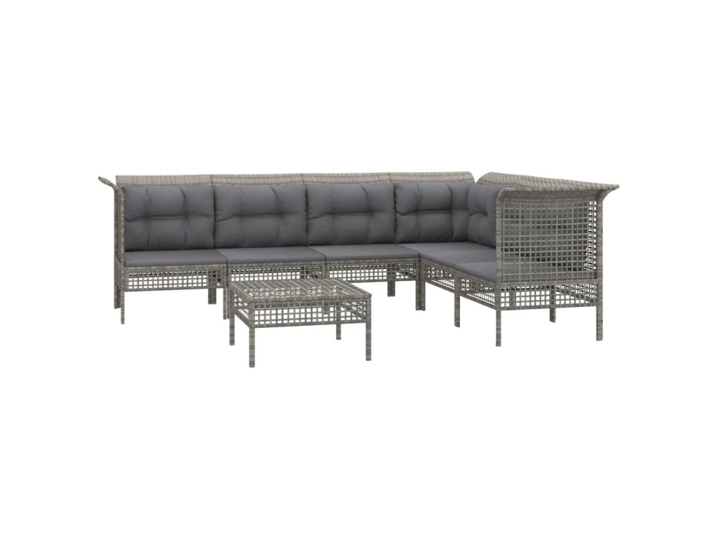 7dílná zahradní sedací souprava s poduškami šedá polyratan 3187516