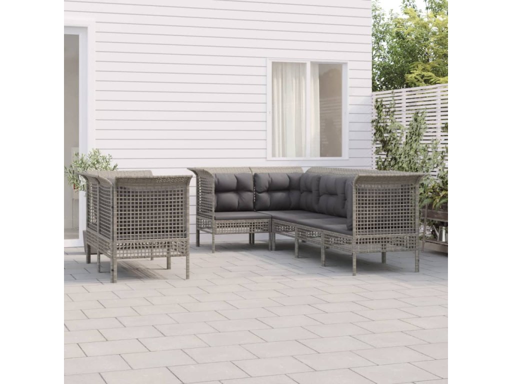 7dílná zahradní sedací souprava s poduškami šedá polyratan 3187541