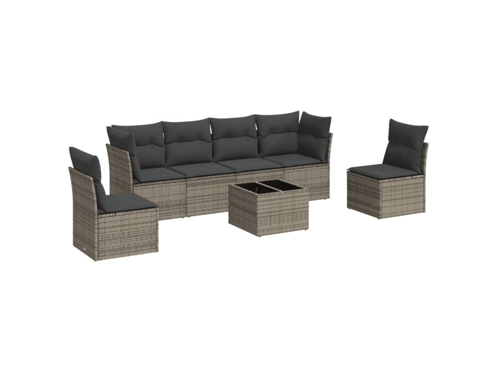 7dílná zahradní sedací souprava s poduškami šedá polyratan 3217380
