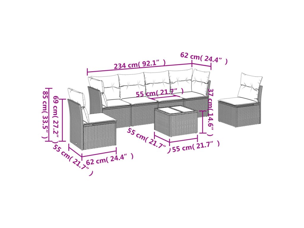 Tato zahradní sedací souprava je dokonalým doplňkem vaší zahrady, terasy nebo dvorku a poskytne vám pohodlné a příjemné místo, kde si můžete povídat s rodinou a přáteli nebo jen tak odpočívat a užívat si pobyt venku.