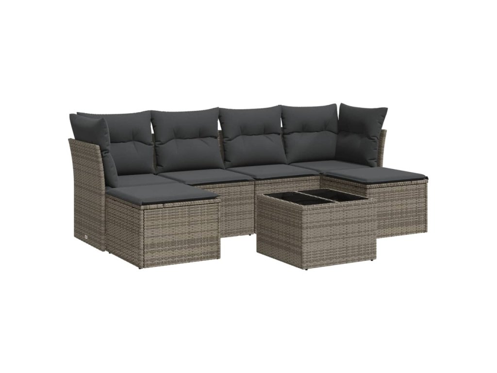 7dílná zahradní sedací souprava s poduškami šedá polyratan 3218020