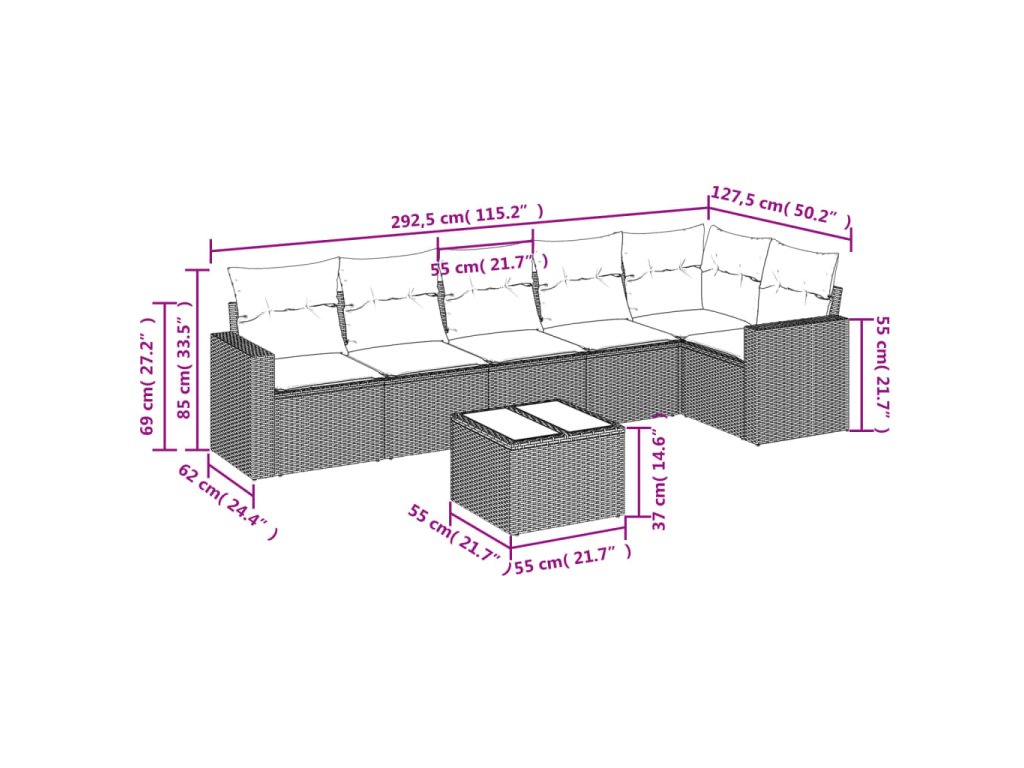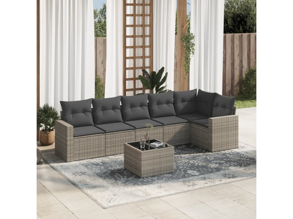 7dílná zahradní sedací souprava s poduškami šedá polyratan 3218990