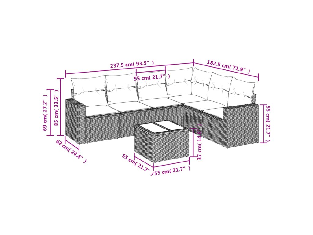 Tato zahradní sedací souprava je dokonalým doplňkem vaší zahrady, terasy nebo dvorku a poskytne vám pohodlné a příjemné místo, kde si můžete povídat s rodinou a přáteli nebo jen tak odpočívat a užívat si pobyt venku.