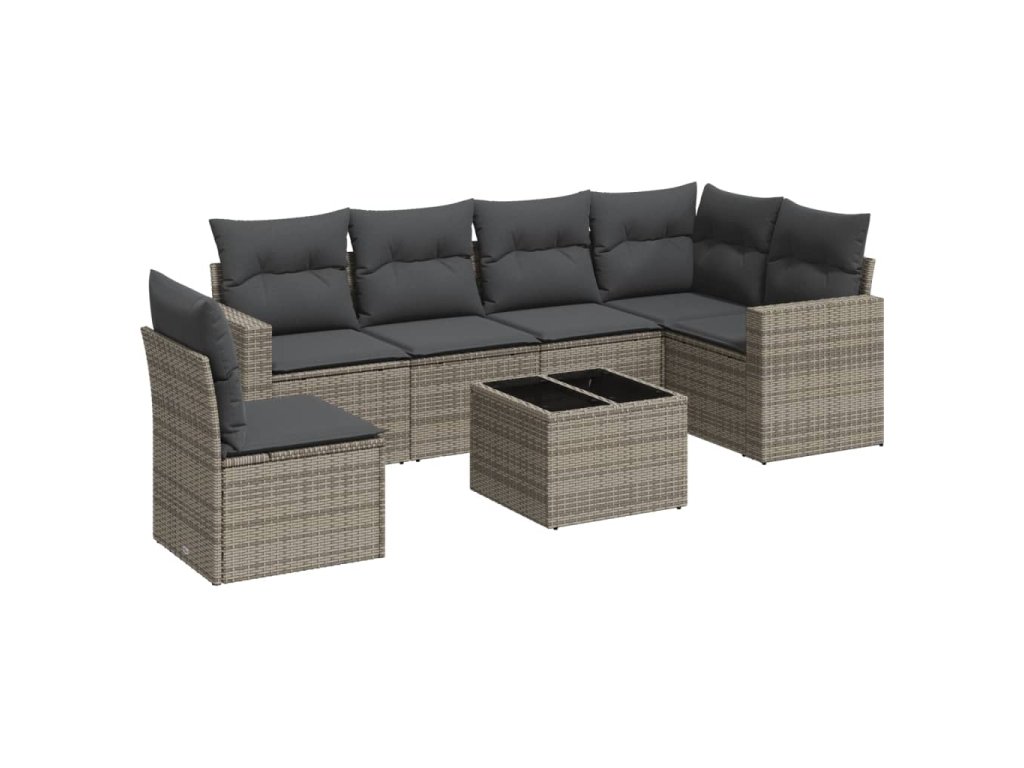 7dílná zahradní sedací souprava s poduškami šedá polyratan 3219030