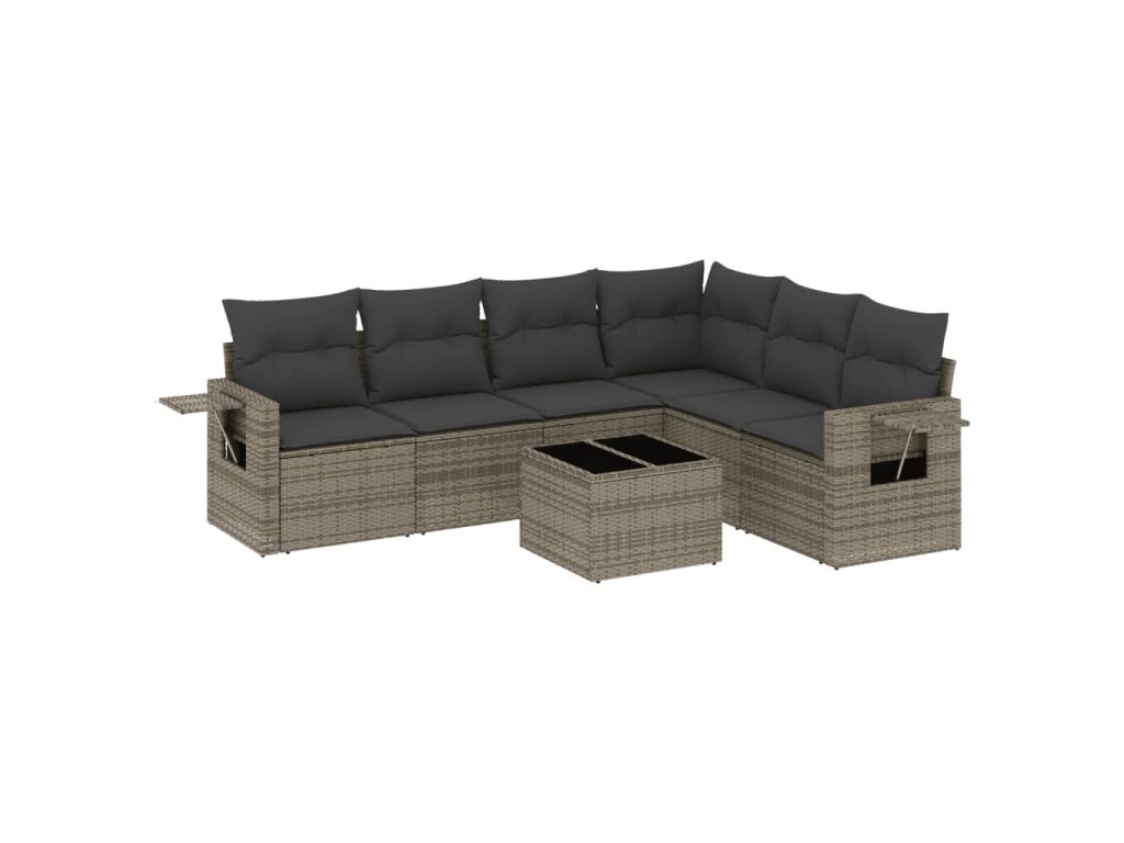 7dílná zahradní sedací souprava s poduškami šedá polyratan 3220219