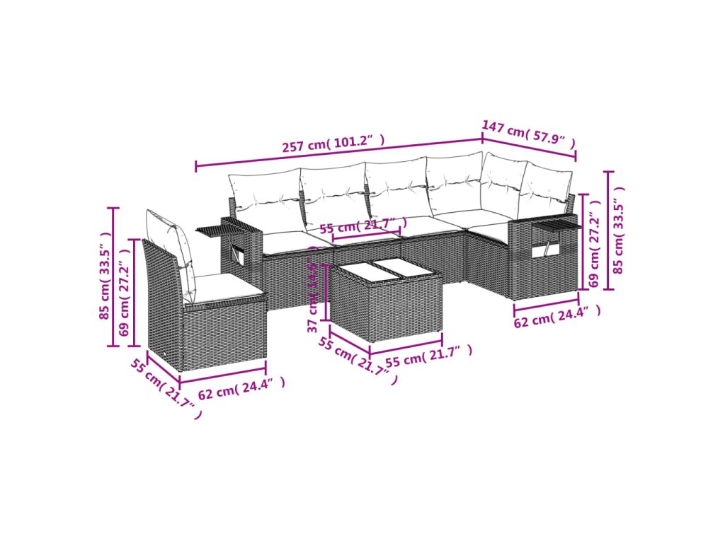 Tato zahradní sedací souprava je dokonalým doplňkem vaší zahrady, terasy nebo dvorku a poskytne vám pohodlné a příjemné místo, kde si můžete povídat s rodinou a přáteli nebo jen tak odpočívat a užívat si pobyt venku.