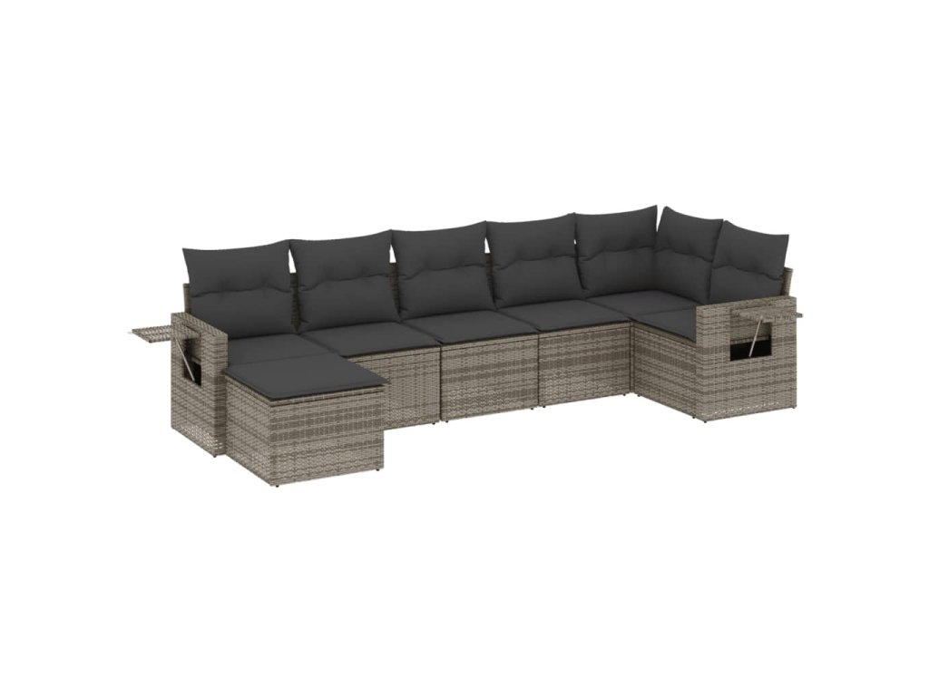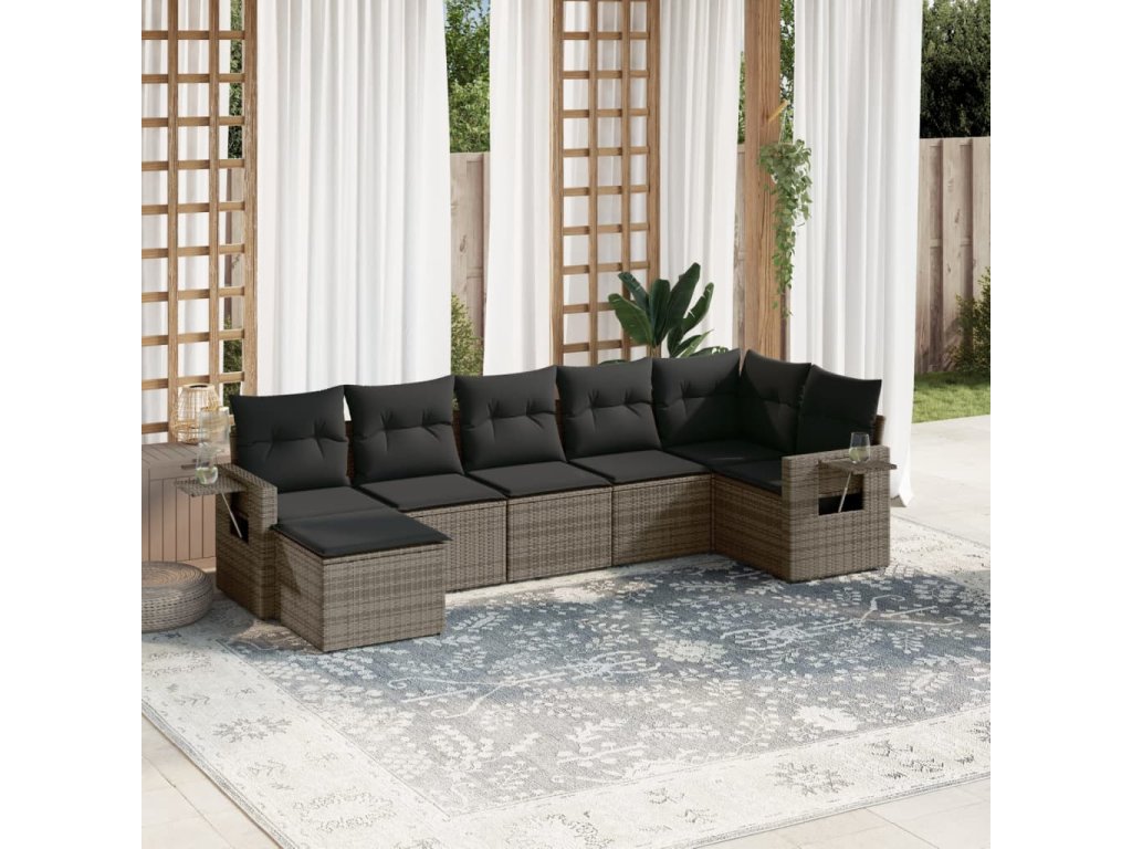7dílná zahradní sedací souprava s poduškami šedá polyratan 3220479