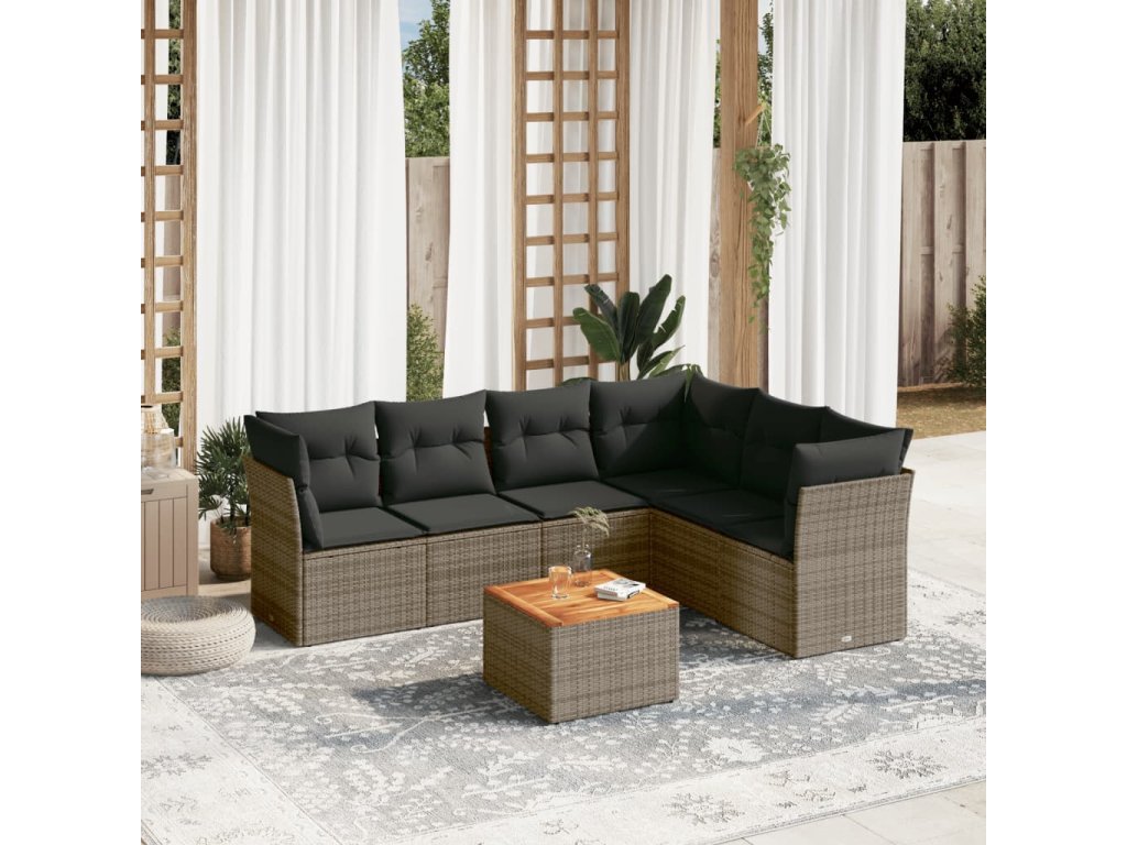 7dílná zahradní sedací souprava s poduškami šedá polyratan 3223659