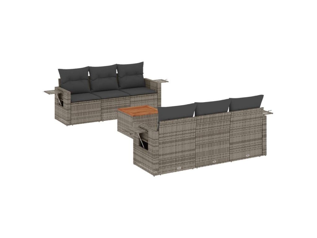 7dílná zahradní sedací souprava s poduškami šedá polyratan 3224457