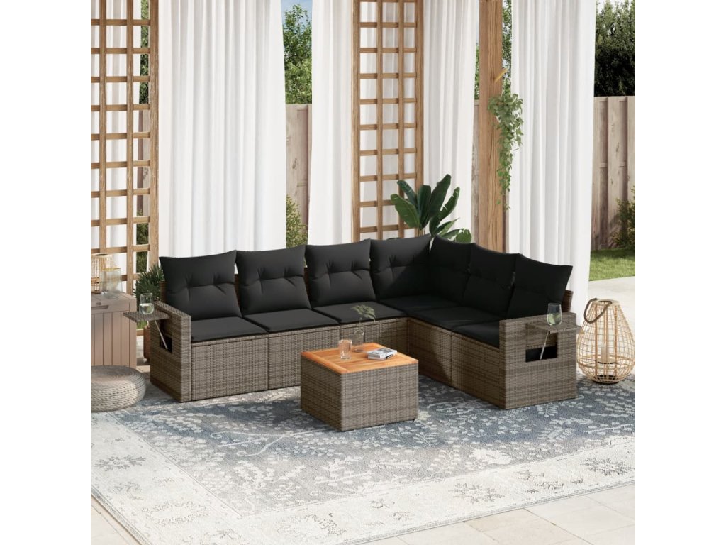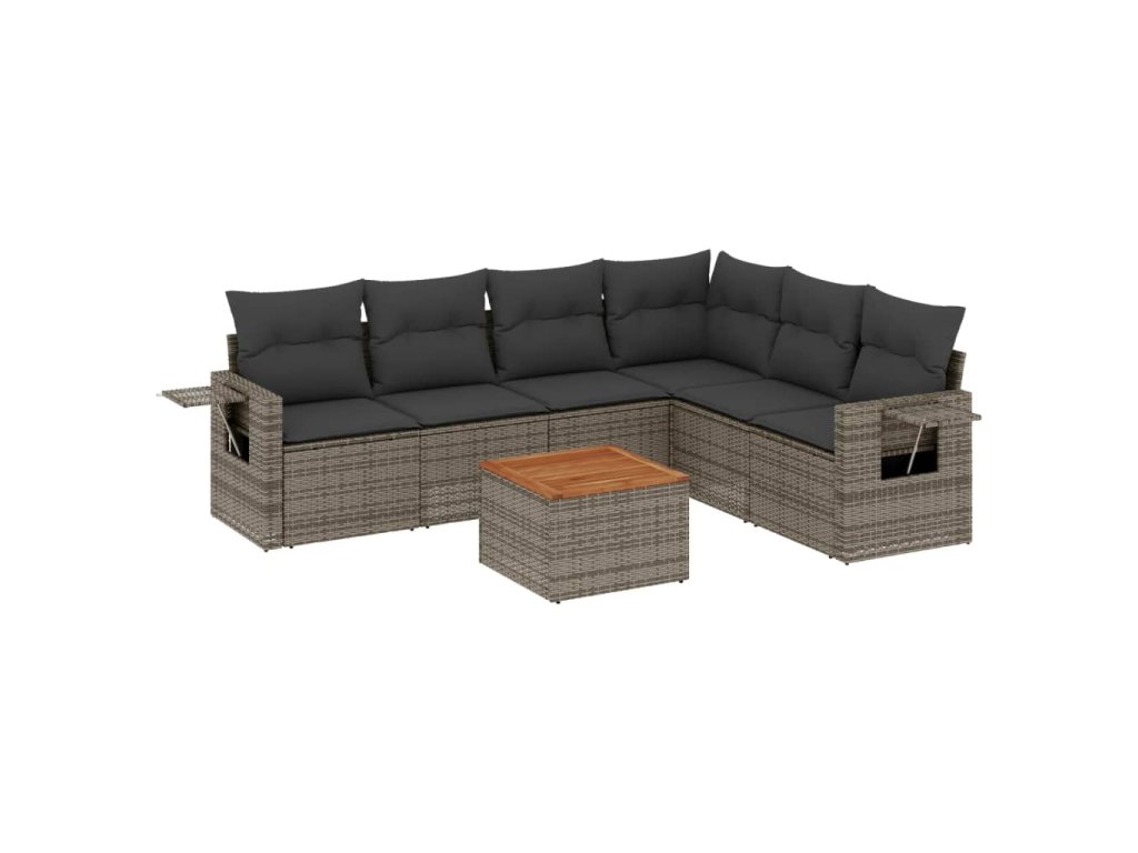 7dílná zahradní sedací souprava s poduškami šedá polyratan 3224583