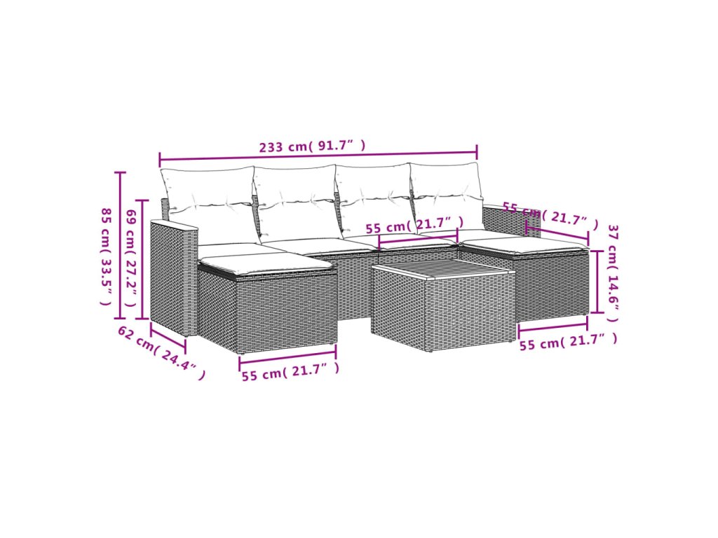 Tato zahradní sedací souprava je dokonalým doplňkem vaší zahrady, terasy nebo dvorku a poskytne vám pohodlné a příjemné místo, kde si můžete povídat s rodinou a přáteli nebo jen tak odpočívat a užívat si pobyt venku.