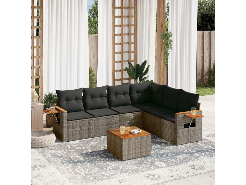 7dílná zahradní sedací souprava s poduškami šedá polyratan 3226851