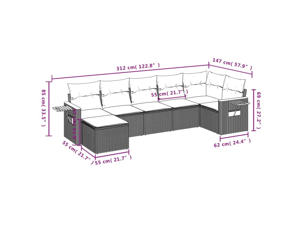 Tato zahradní sedací souprava je dokonalým doplňkem vaší zahrady, terasy nebo dvorku a poskytne vám pohodlné a příjemné místo, kde si můžete povídat s rodinou a přáteli nebo jen tak odpočívat a užívat si pobyt venku.